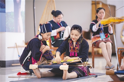 在不久前举行的“中国非遗传承人群研培计划——海南省2021年黎锦技艺研修班”上,符玉和符慧莉的身份有点特殊:她们既是母女,又是师生,进行着黎锦技艺传承的接力。