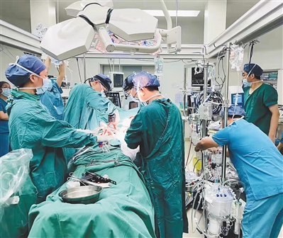 省人民医院多学科联合营救心脏病孕妇,图为手术中。 (海南省人民医院供图)