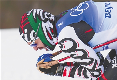 墨西哥运动员莫雷诺在北京冬奥会比赛中。 新华社发