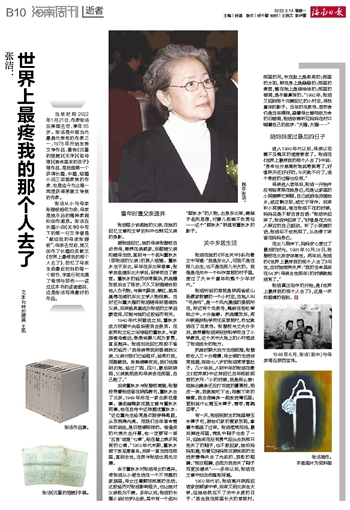 张洁真正创作的开始,是《世界上最疼我的那个人去了》,这是一次向温情的告别。