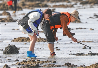 “第一次过来赶海,挺兴奋的。捡贝壳、抓螃蟹、掘沙虫,收获了满满的美味。”来自湖南的游客莫真真说,赶海后,她就在泊爱渔家基地品尝到了白灼鱿鱼、红烧金鲳鱼等特色海味,“还可以去村里参观红色遗址,到附近欣赏红树林,感受生态之美,很不错的一次乡村游。”