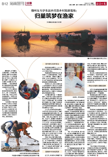 “回乡发展乡村休闲旅游,一方面是充分利用家乡的优越资源,助力村里旅游产业发展,另一方面通过发展旅游业,增加收入,带动当地群众就业,助推渔民转产转业。”林琼玲说。