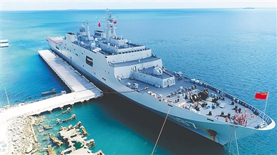 应汤加王国关于火山灾害救援的请求,中国军队派遣海军舰艇于1月31日从广州出发,启运第二批中国援助汤加物资。连续航行5200余海里后,赴汤加执行运送救灾物资任务的中国海军舰艇编队于2月15日抵达汤加努库阿洛法港。此次运送的救灾物资共计1400余吨,主要包括移动板房、拖拉机、发电机、水泵、净水器及应急食品、医疗防疫器材等。新华社发(殷征 摄)