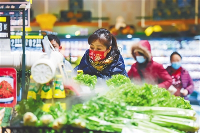 2月18日,市民在呼和浩特市华联超市凯德广场店选购蔬菜。新华社发