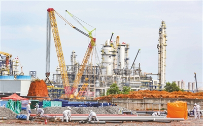 2月18日,在位于洋浦的年产17万吨苯乙烯类热塑性弹性体项目现场,机器声隆隆,800多名工人抓紧施工,场面火热。