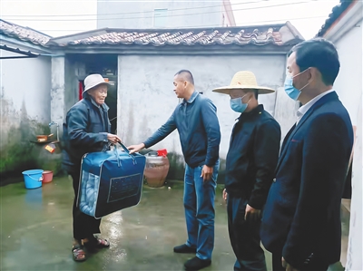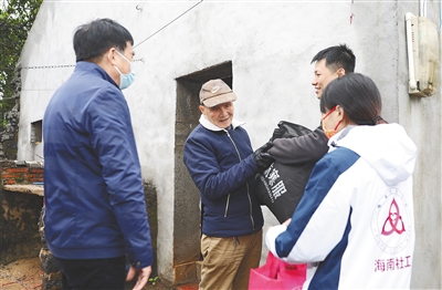 2月21日,屯昌县新兴镇政府工作人员为困难群众送去御寒物资。(屯昌县委宣传部供图)