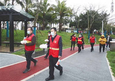 2月21日,海口市琼山区工作人员和志愿者去看望流浪人员。文/本报记者 习霁鸿 图/通讯员 揭育端