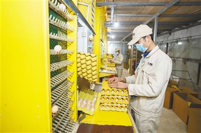■ 本报记者 孙慧传统的人工养殖方式,1个工人管理3000只鸡,引入自动化设备标准化养殖后,1个工人可以管理3万只鸡。