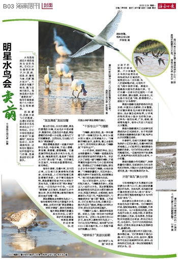 文\海南日报记者 孙慧水鸟是指适应水域或湿地生活的鸟类。它们以水生植物的种子、叶、茎、根,或鱼、虾、蟹等为食,可谓“靠水吃水”。大多数水鸟属于候鸟,需飞往南方越冬。海南岛是水鸟的“避寒胜地”,每年冬春季都有六七十种水鸟在海南栖息。