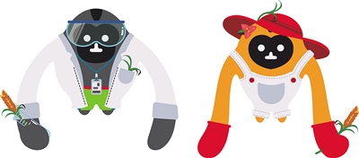元元穿着背带裤,佩戴着一顶红色太阳帽和一双工作手套,在田地实践高科技种苗的培育方法。宵宵是一名种子研究员,身着研究服,戴着科研眼镜,在试管中培育着高科技种苗。它们以“播种未来、收获满载”呼吁全球企业和消费者面向未来,努力耕耘,共创美好生活。