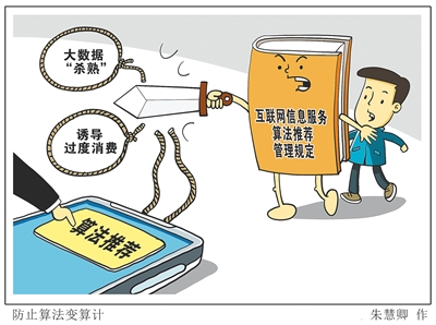 近日,国家网信办等四部门联合发布《互联网信息服务算法推荐管理规定》,明确规定算法推荐服务提供者不得利用算法屏蔽信息、过度推荐、操纵榜单等干预信息呈现,不得利用算法诱导未成年人沉迷网络等,为约束平台行为、保护消费者利益提供了法律依据。大数据时代,“算法”无处不在,在给人们生活提供便利的同时,也产生了“大数据杀熟”、流量造假、诱导沉迷等乱象。因此,要对“算法”加强约束,让其在法治轨道上健康有序运行。目前新规已出台,关键看落实。相关部门应严格落实新规,加强监管,依法严厉打击相关违法违规行为,增强网络执法震慑威力。互联网平台应进一步强化主体责任,推动算法服务公平公正、规范透明。消费者也要树立维权意识,用好手中利器,保护自身权益。(图/朱慧卿 文/魏燕)