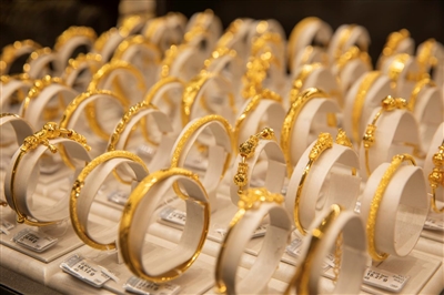 cdf海口日月广场免税店销售的黄金首饰。 本报记者 李天平 摄