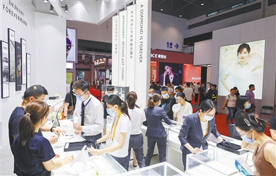 依托首届中国国际消费品博览会平台,戴比尔斯永恒印记向全世界展示其标志性钻石珠宝系列产品。本报记者 李天平 摄