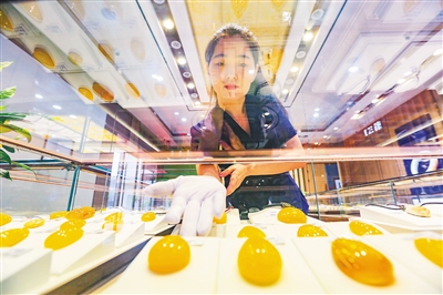 2月23日,在位于洋浦保税港区的海南玉玲珑珠宝科技有限公司(以下简称玉玲珑)加工车间内,工作人员正仔细地筛选琥珀原石,经工匠之手雕刻打磨,一颗颗棱角分明、其貌不扬的原石“摇身一变”,成为光泽油润的金黄色吊坠。