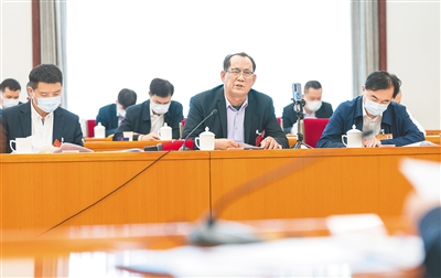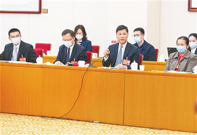 ① 3月5日,出席十三届全国人大五次会议的海南代表团在住地举行全体会议,审议政府工作报告。②③ 3月6日,出席十三届全国人大五次会议的海南代表团在住地举行全体会议,继续审议政府工作报告。本报特派记者 宋国强 摄