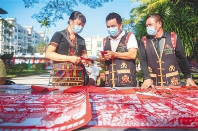 乐东的剪纸技艺表演。