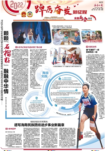 发展经济、改善民生是凝聚人心的基础,同步现代化、实现共同富裕的过程就是巩固中华民族大团结、推进中华民族共同体建设的过程。邹其国指出,要进一步加大对民族地区的支持力度,大力发展特色优势产业,在现代化进程中打造民族乡村振兴、共同富裕的海南样板。“今年海南将开展第二批省级少数民族特色村寨评选命名工作,引导我省民族地区美丽乡村建设良性发展。”