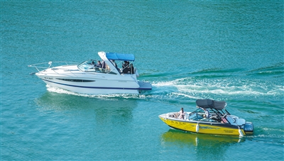 在陵水清水湾游艇码头,游客乘坐游艇出海。