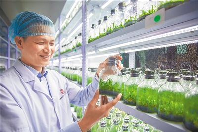 海南创跃花卉生物科技有限公司的工作人员在培育兰花品种。本版图片均由本报记者 袁琛 摄