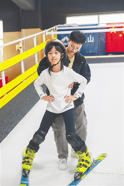 海口一名学生在教练的指导下学习滑雪。 本报记者 袁琛 实习生 张芷毓 摄