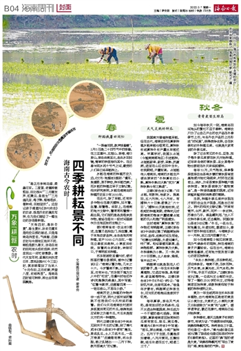 文\海南日报记者 梁君穷“春正月李桃花盛,柔桑可采。二麦黄,老圃种姜剪韭,田功既兴”“二月雷发声,虹霓见,鱼苗生”“三月温风至,梅子熟,槟榔苞拆,催耕鸣,田蛙鼓吹”。这些记录于清道光《琼州府志》的农谚,既是历史的真实写照,也为我们描绘了一幅生动的琼岛春耕图。