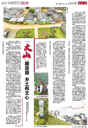 名为“大山”,却无大山。地处定安县中部的大山村,与山并无关联。这里既不毗邻高山,也不靠近江河,与城区相距较远。村里没有历史文化名人和典故,文化底蕴也相对薄弱。