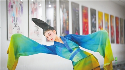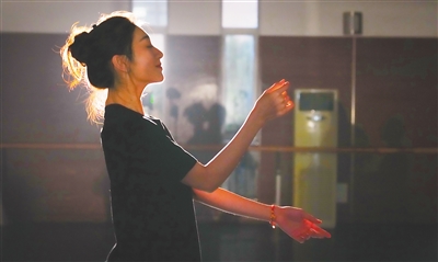 3月5日,舞蹈诗剧《只此青绿》演出前,曾小玲练习舞蹈动作。