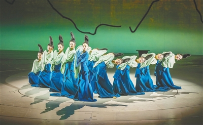 3月3日首演结束后,不少观众都表示自己多次被感染而泪目。这部古典美学氛围浓郁的剧目如诗如画,参演的舞蹈演员也在每一次演出中唤醒自身内心深处对中华传统文化的认同感。这样的文化自信传递给观众,就会让观众“看一次‘青绿’,启一腔爱国情”。