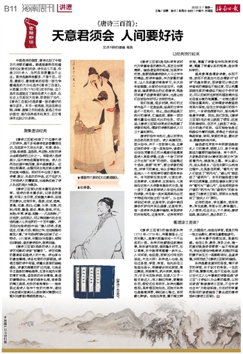 文\本刊特约撰稿 海滨中国是诗的国度,唐诗达到了中国古代诗歌的巅峰。据清朝康熙年间编定的《全唐诗》所录,诗作近5万首,作者2000余人,当然实际数量远不止此。唐诗选集种类繁多,不啻千百。可是,最盛行、最有影响的却是一册为学童编选的大众化选本《唐诗三百首》。从乾隆28年(1763年)成书开始,这个选本迅速超过了其他各家大小选本,在社会上引起巨大反响,即使到了当代,《唐诗三百首》仍是家置一册的最好的普及读本。本书一版再版,而且各种注释、译解、图解之作和续选、新选之作纷纷面世,国内各种版本和英文、日文等译本达到200多种。