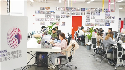 ▲在海口复兴城互联网信息产业园,年轻人在网红孵化示范基地办公。本报记者 张茂 摄