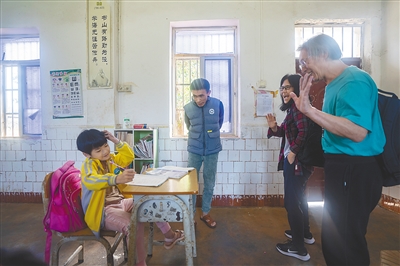 爱心人士看望陈奕雄老师和学生。 本报记者 袁琛 摄