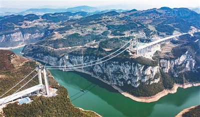 目前,由贵州路桥集团承建的金烽乌江大桥建设进展顺利。金烽乌江大桥是贵阳经金沙至古蔺(贵金古)高速公路项目的重要控制性工程,桥梁全长1473.5米,预计年底建成通车。新华社发