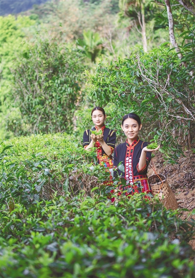 在靠近五指山脚下的水满乡方龙村委会什再村民小组,省旅文厅驻方龙村乡村振兴工作队队长谢坚,带领村民和队员修了一条近1公里的水泥路。从这条路放眼望去,一垄垄茶园让人心旷神怡。“这片上百亩的茶园周边要重新规划,打造成新的网红茶园打卡点。”谢坚说,这里是水满茶的主要产区,几乎家家户户都种植水满茶,茶旅融合是下一步乡村振兴的工作重点。