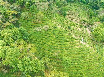 俯瞰毛纳村茶园。 本版图片除署名外均由海南日报记者李天平摄
