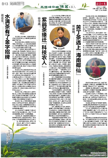 张忠东是五指山水满润红生态农业有限公司的创始人,从小就生活在茶园周边,对茶有着浓厚的兴趣,这也直接让他人生大半的时间都在与茶打交道。