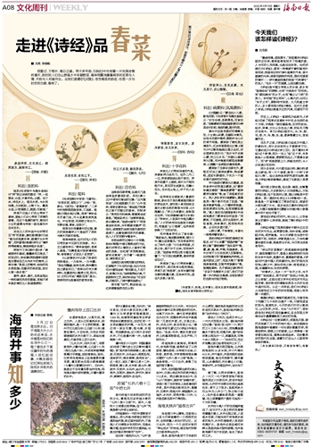 历史上,《诗经》一直被视为经典书。《诗经》反映了西周初至春秋中叶社会生活的各个方面,仿佛是一轴巨幅画卷,当时的政治、经济、军事、文化以及世态人情、民俗风习等尽在其中。举凡《诗经》里的礼、乐、车、服、花、草、木、鸟、兽、虫、鱼,都承载着文化,言说着历史。