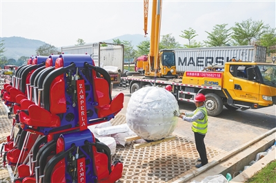 本报三亚3月21日电 (记者李艳玫)3月21日,一批进口大型游乐设施运抵三亚,涉及货值630.7万元。这是海南自由贸易港自用生产设备“零关税”政策升级后的首笔业务,该游乐设施预计今年6月投入使用。当天下午,在三亚丝路欢乐世界,吊车正分批将游乐设施安全转移到地面。据介绍,该设施名为“太空星云”,是意大利赞培拉公司最新研发的家庭型专利游乐设施。“公司在去年向意大利赞培拉公司下了购买‘太空星云’的订单,预计今年初交货。幸运地赶上了海南自贸港自用生产设备‘零关税’政策升级,我们随即咨询相关部门,并结合实际整理相关材料顺利报批,享受到实实在在的政策红利,降低了项目的建设成本。”陕旅(三亚)旅游投资有限公司副总经理武志学说。