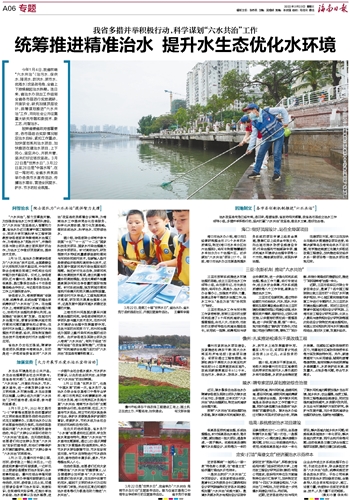 海口市治水办介绍,海口市已经调研梳理全市373个水体的水质情况,制定《海口市水体分区划片治理图》,将河长制管辖覆盖的水体划分为6个治理片区。初步谋划“六水共治”项目217个。目前,海口市治水办正在复盘梳理水务系统的项目申请上级资金渠道,搜集汇总上级资金申报文件,列出城市排水防涝设施建设专项、污染治理和节能减碳专项、重点流域水环境综合治理专项等13个方向,精准谋划项目,实现科学治理。