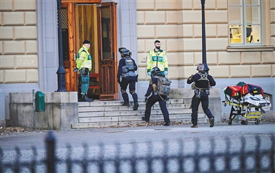 3月21日,警察在瑞典马尔默一所高中的袭击事件现场工作。新华社/路透