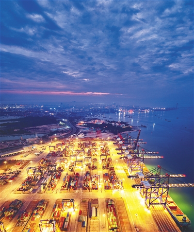 洋浦国际集装箱码头夜景。 本报记者 陈元才 摄