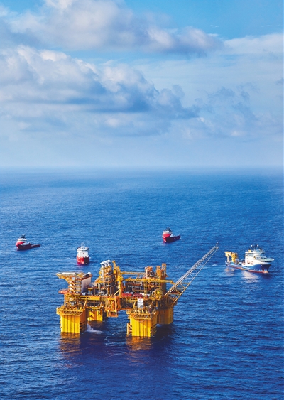 位于陵水海域的我国首个自营深水大气田“深海一号”。 本报记者 封烁 摄