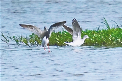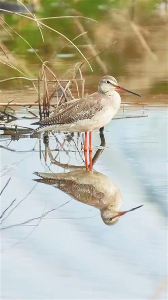 本报讯 (记者刘婧姝 特约记者黄兆雪)近日,昌江黎族自治县海尾国家湿地公园(试点)管理中心传来好消息:鹤鹬首次在该公园被拍照记录。截至目前,海尾国家湿地公园(试点)记录到的鸟类总数共157种,国家二级保护鸟类28种。体长约26厘米,身着灰褐色羽毛,一双红色的细腿十分亮眼,展开翅膀用力扇动时,便会露出雪白的肚皮……鹤鹬,这一在我国仅繁殖于新疆的鸟类,于近年来在部分南方地区不断被记录。海南日报记者了解到,2000年8月,鹤鹬被国家林业局列入《国家保护的有益的或者有重要经济、科学研究价值的陆生野生动物名录》。