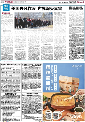 多国经济专家已经发出警告,乌克兰危机将使食品和能源等大宗商品价格上涨,进而推高通胀。在新冠疫情尚未结束的情况下,这将给全球经济复苏带来严峻挑战,尤其是那些经济结构单一、经济基础薄弱的发展中国家,将更加明显地感受到这场危机带来的外溢效应。