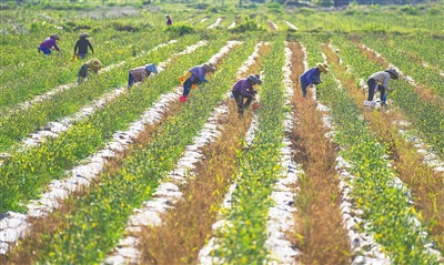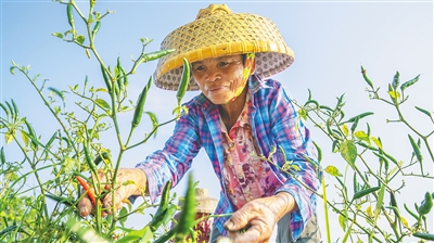 近日,在文昌市锦山镇南溪村,农户趁着好天气采摘辣椒。本报记者 袁琛 摄