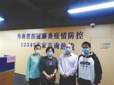 王璐(左二)带领团队助力海南省新冠肺炎疫情防控12345专家咨询热线建设。 受访者供图