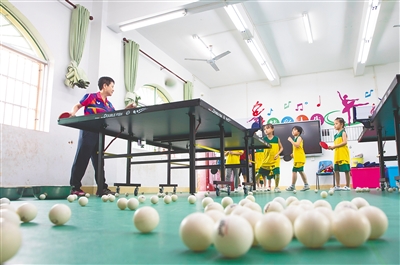 “少年强则国强,我们强水满强……”落日余晖映照在五指山头,山脚下的水满中心学校里激荡着乒乓球队孩子们稚嫩且有力的呐喊声。