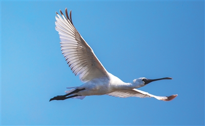 栖息在昌江海尾国家湿地公园(试点)的黑脸琵鹭。 本报记者 李天平 摄