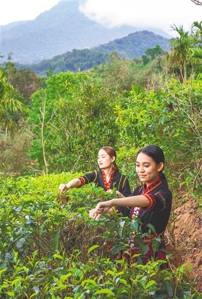 近日,在五指山市水满乡方龙村的茶园里,村民采摘春茶。本报记者 李天平 摄