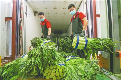 据悉,海口多措并举做好抗击疫情期间的蔬菜储备工作,充分发挥市场公益性与保供稳价的主体作用。目前,海口市菜篮子江楠市场积极组织蔬菜调运,场内到货量比日常多出接近一倍,该市场自4月5日23时30分至4月12日24时,连续7天免除冷库处置费及冷藏费,全力护航果蔬储备,解决经营户后顾之忧。截至4月7日,已有50多家经营户在该市场冷库中共存放600多吨果蔬。通讯员 宁远 摄