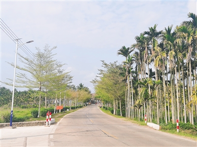 海南日报记者了解到,在大塔线建设之初,琼海市政府有关部门便全力打造“美丽农村路”,一方面在公路建设时充分结合沿线村落景观,栽植多品种适宜本地生长的绿化树木,进一步改善沿线农村的人居环境,推进美丽乡村建设;另一方面通过完成“路田分家”“路宅分家”,构建起田路权属明确,沿线设施完善的长效机制,有效保护了路产路权,美化绿化了路域环境,为打造“畅、安、舒、美”出行条件和建设生态宜居的农村环境当好先行。